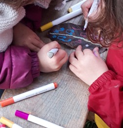 Ces moments en pleine nature les apaisent, ils retrouvent un espace de jeu et d'exploration libres sans autre contrainte que quelques règles de sécurité. Ils s'émerveillent devant leurs petits trésors dénichés sur un arbre, dans l'herbe, ... Ils coopérent pour construire une cabane, grimper dans un arbre, fabriquer un arc...