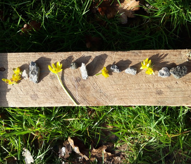 Après avoir délimité des petits carrés avec des bâtons, les enfants remplissent chaque carré avec un matériau trouvé sur place (cailloux, herbes, feuilles mortes, bois, ....). Une fois le parcours créé, place aux sensations ! On enlève chaussures et chaussettes et on se lance pieds nus sur le parcours !