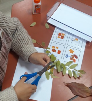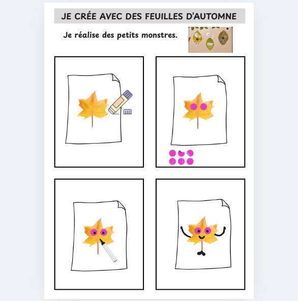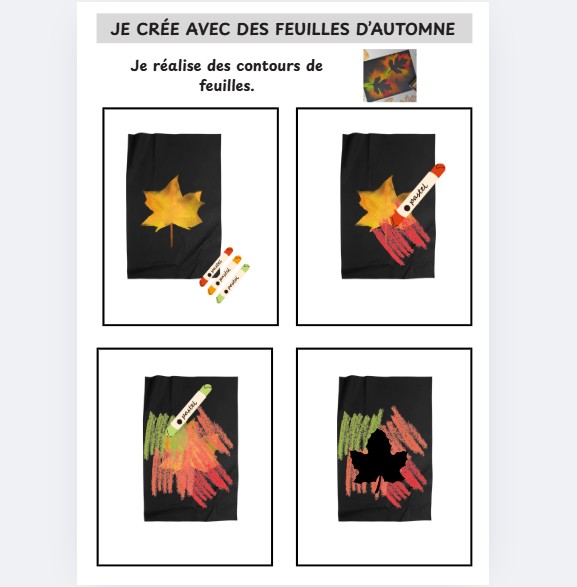Mes élèves adorent collecter les feuilles dès que je viens l'automne, notamment lors de nos sorties en école dehors. Afin de faire du lien entre ces temps en nature et les activités de classe, j'ai mis en place plusieurs plateaux de création artistique autour des feuilles mortes.